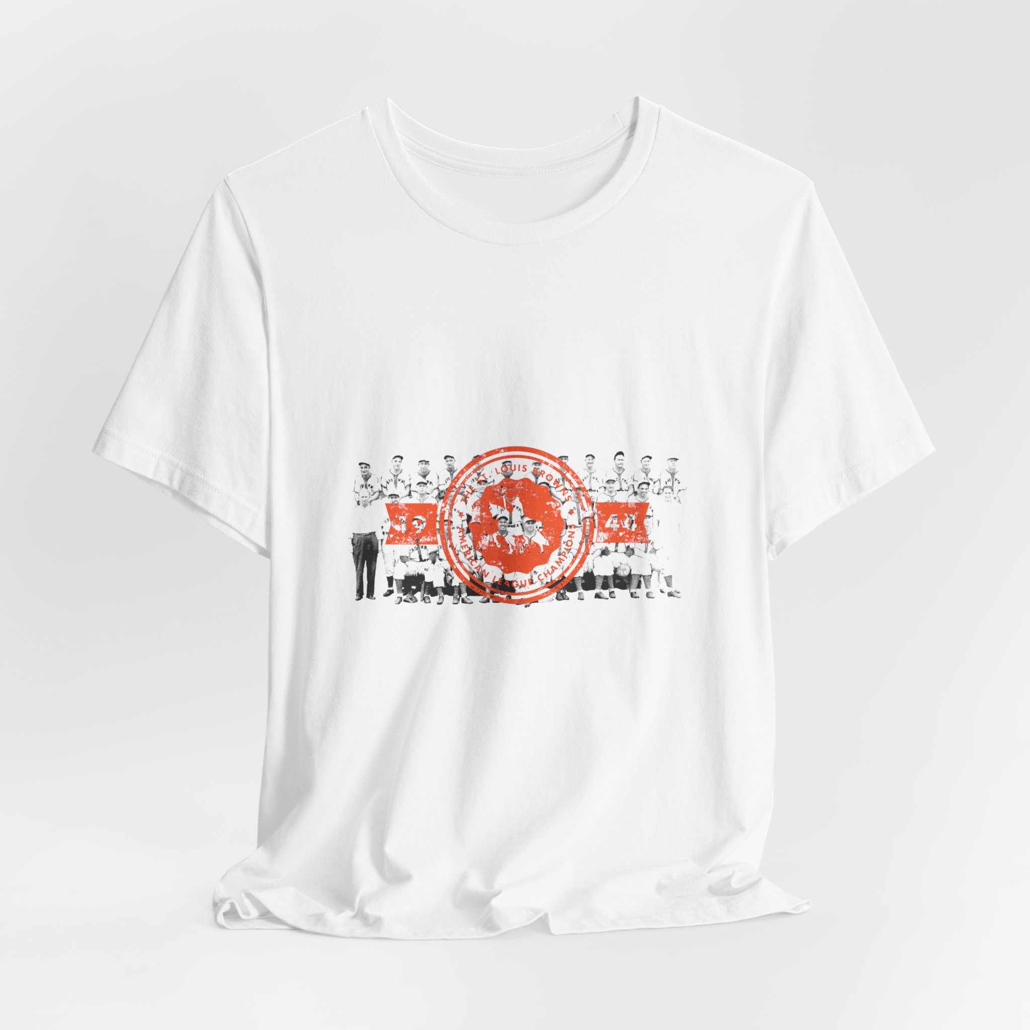 Lightweight, breathable, and built for easy layering — this short sleeve tee brings urban energy to everyday wear. The front features a detailed, vintage-inspired emblem in warm red tones, balanced by clean white fabric for a crisp, lived-in look. It sits with a retail fit that reads casual and neat, while the crew neckline and soft Airlume cotton keep comfort front and center. Wear it on its own or under a jacket when you want a subtle statement that still feels effortless.
